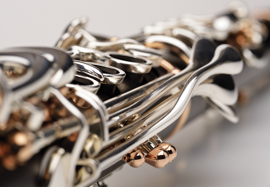 It is also the arrival of a completely new aesthetic line for the first time offered as standard on a clarinet combining pink gold and silver – Grand Siècle style – derived from tests carried out on the instruments manufactured for the occasion. of our 190th anniversary. A unique gold-plated medallion enhances the overall aesthetic of the clarinet to make it even more unique and recognizable among all.