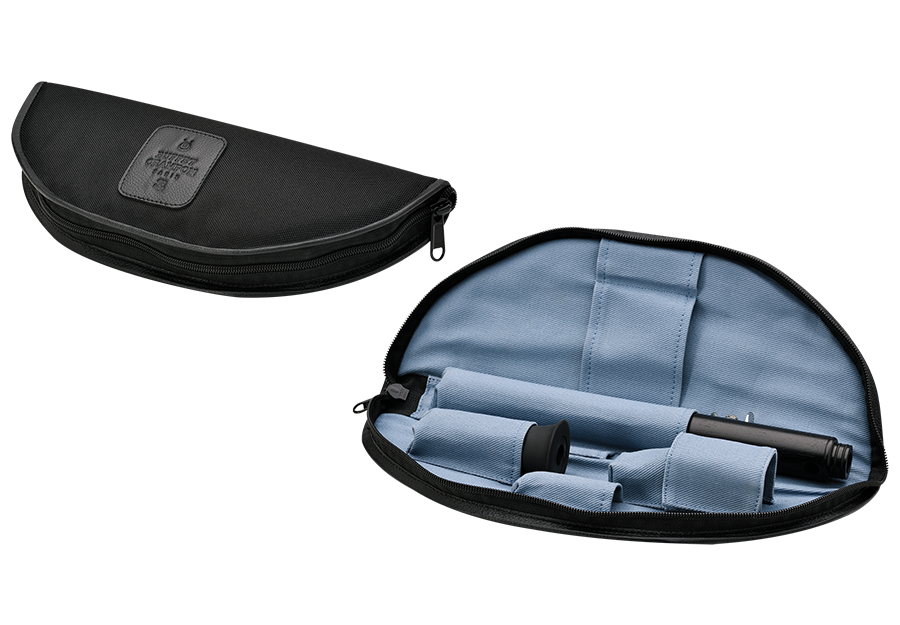 The Pocket Clarinet allows young aspiring musicians to practice on a genuine single-reed musical instrument, as the sound is produced by a B-flat clarinet mouthpiece and resonates in a body made of Mozambique ebony (Dalbergia melanoxylon).